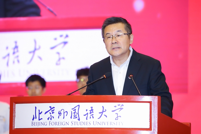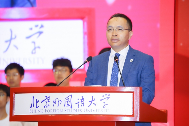 教师代表、北外历史学院/全球史研究院院长李雪涛在发言中结合自己的人生经历,分析了大学教育与基础教育阶段的不同,希望同学们能在大学里学会独立思考和批判性分析,在北外拥有国际视野、掌握跨文化理解能力,更好地理解世界、理解文明、理解自身,为实现梦想不懈努力。