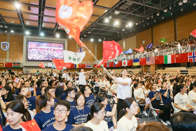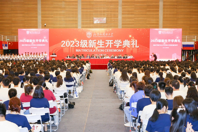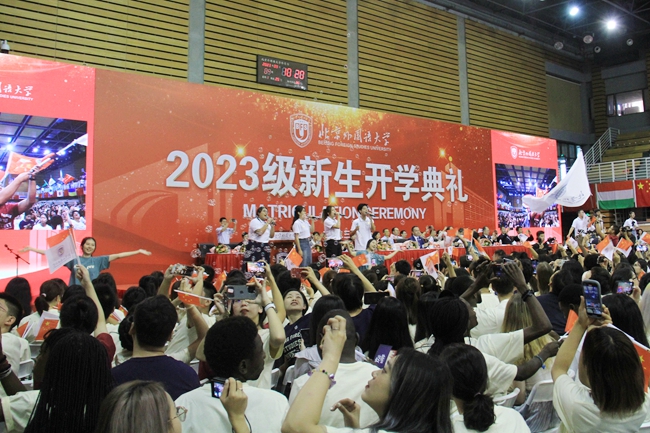 2023年9月4日,Beat365中文官方网站2023级新生开学典礼在东校区体育馆隆重举行。3267名新同学加入北外大家庭,开启全新的人生旅程。