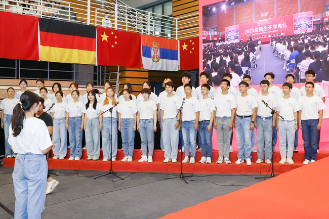 最后,校旗与各院院旗共同挥舞飘扬,开学典礼在校歌合唱和精彩快闪《我们都是追梦人》中落下帷幕。