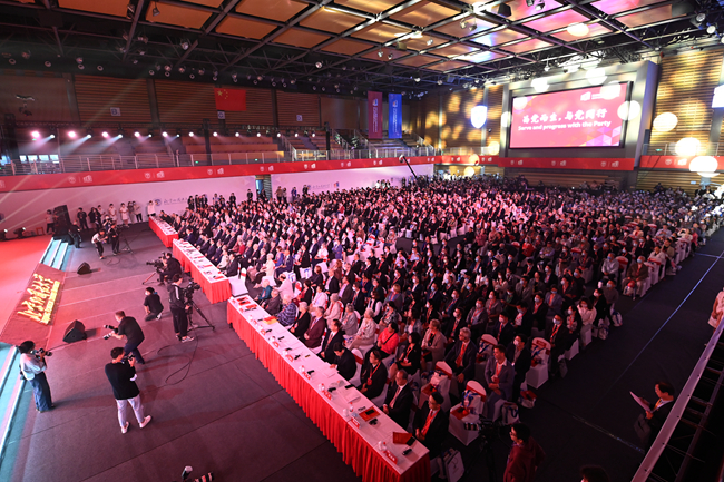 教育部党组成员、副部长钟登华,北京市委教育工委常务副书记郑吉春,全国人大外事委员会主任委员张业遂,外交部原部长李肇星,全国政协港澳台侨委员会副主任裘援平,中国人民武装警察部队中将、副政委陈剑飞,北京大学校长郝平,北京理工大学校长张军,中国原常驻日内瓦代表团代表、联合国原副秘书长金永健,中国人民对外友好协会原会长陈昊苏,中国原驻英国大使马振岗,第十届全国政协港澳台侨委员会副主任唐闻生,中国原驻欧盟使团长、大使关呈远,中国原驻法国大使赵进军,海南省原副省长、原国家工商总局副局长李东生,总参谋部二部原副部长、少将张志凯,海军原副参谋长、少将周伯荣,中国政府欧亚地区事务特别代表、外交部原副部长李辉,新华社原副社长马胜荣,中国延安精神研究会常务副会长、中联部原副部长艾平,中国原驻印度大使张炎,中国政府拉美事务特别代表、中国原驻墨西哥大使邱小琪,第十二届全国人大法律委员会副主任委员李连宁,中国外文局副局长、总编辑高岸明,中国银行总行副行长陈怀宇,中央社会主义学院党组成员、教务长徐绍钢,北京冬奥组委对外联络部副部长万学军等出席大会,外交部、商务部、安全部等相关部委司局领导,空军装备部、北京市外办、山西省教工委、新华社、中央广播电视总台、中国对外文化集团、人民网、中国日报、凤凰卫视、环球时报、中国交通建设集团等单位代表,阿尔巴尼亚、亚美尼亚等30多个国家的驻华使节,兄弟高校代表,生源中学代表,学校老领导、离退休人员、校友和师生代表参加大会。全校师生、海内外校友和社会各界人士通过线上直播方式“云端”相聚。大会由北外党委书记王定华主持,党委副书记、校长杨丹作了题为“语通中外,道济天下”的致辞。