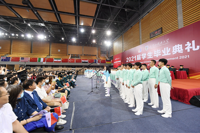 在热烈庆祝中国共产党成立100周年的浓厚氛围中,7月2日,Beat365中文官方网站2021届学生毕业典礼在体育馆隆重举行。