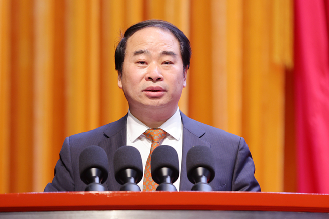 王定华强调,六年来的成绩来之不易,形成的经验弥足珍贵。这归功于教育部党组、北京市委的坚强领导,归功于学校领导班子新老成员的接续奋斗,归功于广大党员干部和师生员工的不懈努力,归功于社会各界、广大校友的关心支持。王定华代表学校党委向长期支持北外的各级领导,各界朋友和广大校友,向学校老领导、老同志、各民主党派和无党派人士,向全校党员和师生员工,表示最诚挚的感谢和最崇高的敬意!
