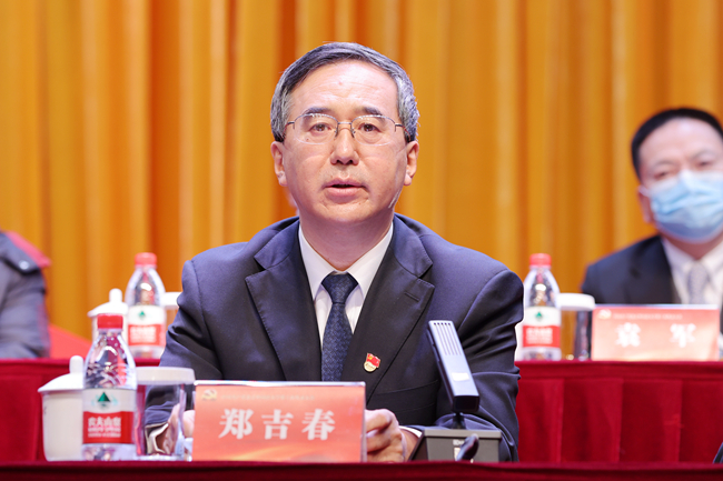 郑吉春代表北京市委教育工委对大会召开表示热烈祝贺,对北外自第九次党代会以来取得的成绩表示肯定。他指出,自第九次党代会以来,在教育部党组和北京市委的坚强领导下,学校党委始终坚持加强党的全面领导,贯彻党的教育方针,牢牢把握社会主义办学方向,为建设世界一流外国语大学打下了坚实基础。始终坚持立德树人根本任务,做好《习近平谈治国理政》“三进”工作,注重培养学生中国情怀和国际视野,培养了一大批涉外高素质人才。始终坚持服务国家和首都需求,承办23所海外孔子学院,全力支持北京冬奥会,疫情期间面向全国免费开放外语在线学习平台,体现了学校胸怀大局、服务大局的担当与作为。