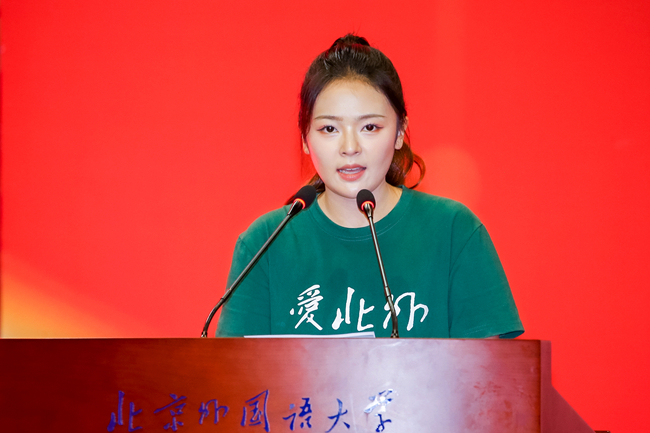 研究生新生代表、国际关系学院外交学专业的韩江雪结合在北外六年的学习和工作经历,表达了对新时代外语人才使命的思考,号召同学们勤奋学习、勇担责任,努力成为有家国情怀、全球视野、专业本领的复合型人才,为推动世界和平与繁荣贡献智慧与力量。