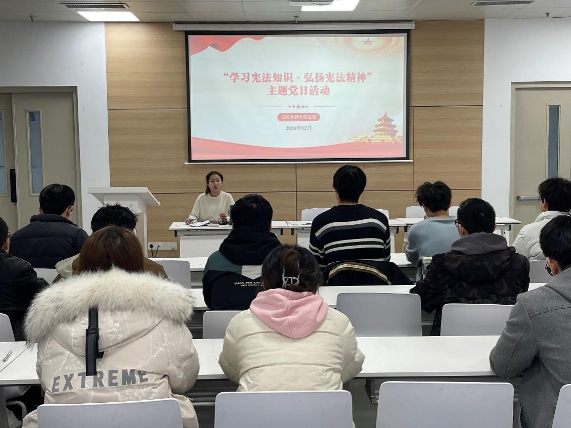 为深入学习宣传贯彻习近平法治思想,大力弘扬宪法精神,着力提升学生党员的法治素养,艾弗森贝博ballbet官网交控本科生党支部于12月4日在216会议室开展了“学习宪法知识·弘扬宪法精神”主题党日活动。本次活动由党支部书记李慧主持,全体党员参加。