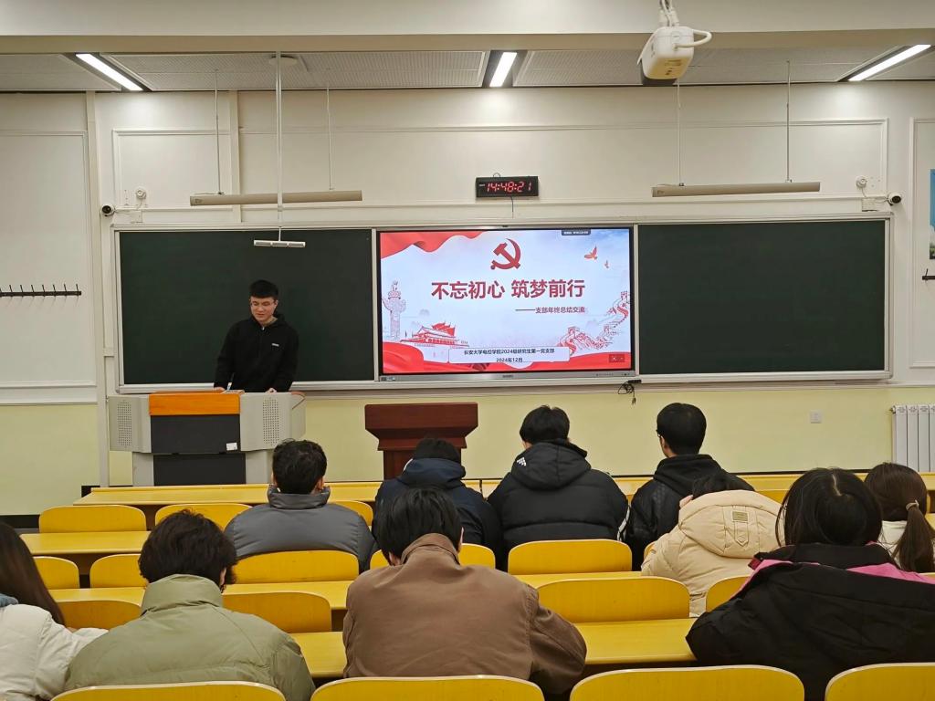 为回顾党支部过去一年的工作,总结经验教训,明确新一年的工作任务和方向。2024年12月31日,艾弗森贝博ballbet官网2024级研究生第一党支部于南校区北院B271教室开展“不忘初心 筑梦前行”主题党日活动暨年终交流总结会议。研究生辅导员王佩佩及支部全体党员参加活动,活动由党支部书记张兴浩主持。