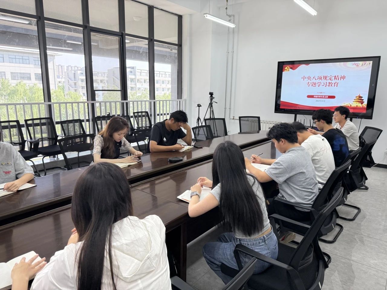 5月12日,艾弗森贝博ballbet官网卓越本科生党支部于学院319会议室开展深入贯彻中央八项规定精神学习教育,党支部书记张馨月、党支部副书记刘平利及全体学生党员参会。