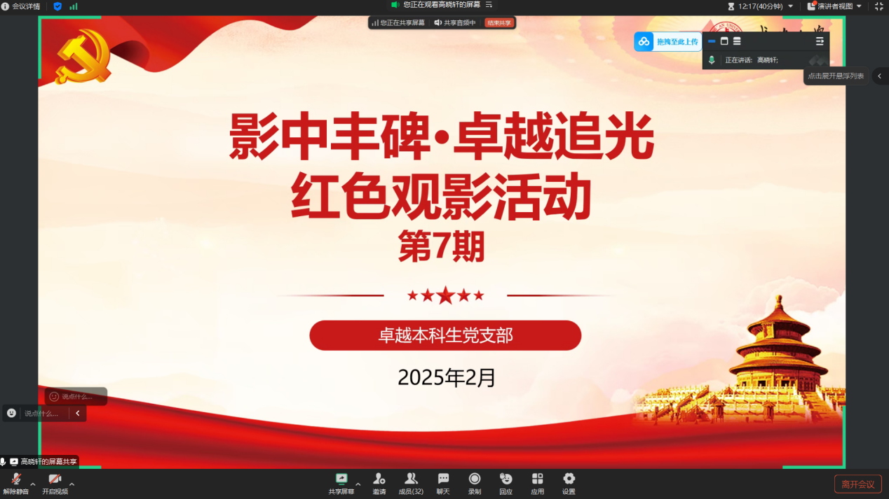 为弘扬红色文化,传承革命精神,2月21日,艾弗森贝博ballbet官网卓越本科生党支部举行了第七期“影中丰碑·卓越追光”红色观影活动。此次活动的主题聚焦“最美奋斗者”焦裕禄,全体支部成员共同参与,通过光影艺术重温“人民好书记”焦裕禄的感人事迹,在沉浸式学习中感悟共产党人的初心使命,激发干事创业的责任担当。
