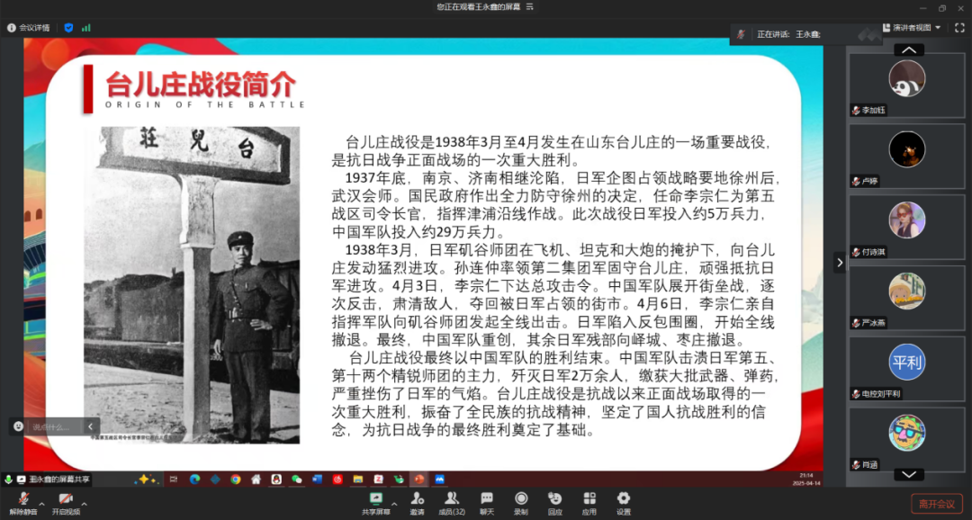 为弘扬爱国主义精神,扎实推进党史学习教育,铭记艰苦卓绝的历史。3月10日晚,艾弗森贝博ballbet官网卓越本科生党支部举行了“烽火印记·卓越传承”革命主题故事分享活动,集中观看红色影片《血战台儿庄》。