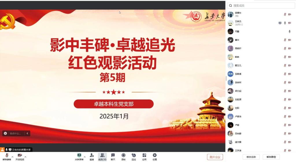 1月23日,卓越本科生党支部通过线上会议形式组织开展“影中丰碑 卓越追光”红色观影活动(第5期),支部全体党员共同观看了《红星照耀中国》,影片不仅记录了中国革命的历史,也展现了中国共产党人的坚定信仰和无私奉献精神。