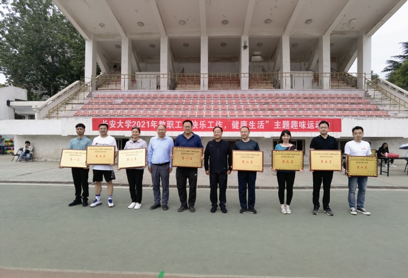 5月13日~15日,我校在渭水校区召开了第十五届阳光体育运动暨2021年春季运动会。贝博ballbet官网教职工积极踊跃参加了运动会比赛规定的所有项目并获得历史最好成绩,荣获团体二等奖:其中8x100师生混合接力赛获全校第四名,师生混合跳绳比赛获全校第六名。在5月14日上午的校教职工趣味运动会中获得众星捧月项目第三名的好成绩。同时,学院领导在翻轮胎、乒乓球颠球跑、抱实心球跑等比赛中也取得了优异名次。