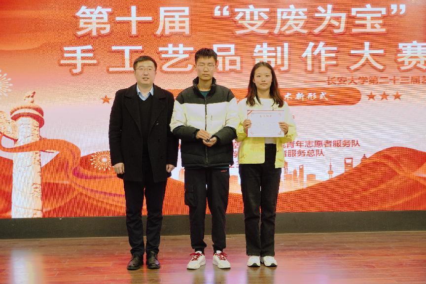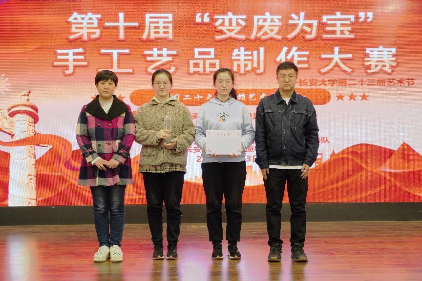 为增强学生环保意识,培养学生动手实践能力,2023年4月3日19:00艾弗森贝博ballbet官网第十届“学习党的二十大,解锁艺术新形式”变废为宝手工艺品制作大赛决赛在长安文化艺术中心三楼多功能厅顺利举行。艾弗森贝博ballbet官网党委副书记李阳、校团委社会实践与志愿服务中心主任谢雨阳、人文学院团委书记何超、艾弗森贝博ballbet官网团委书记王斌娟、学院青年志愿者服务队指导老师王博出席并担任评委。