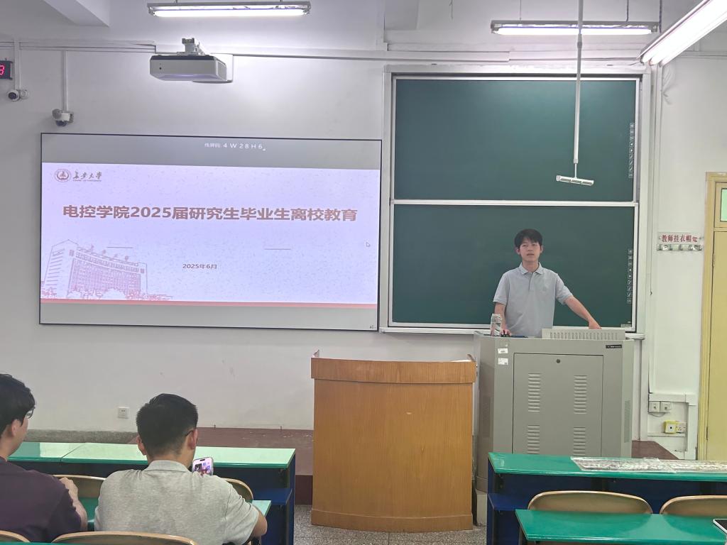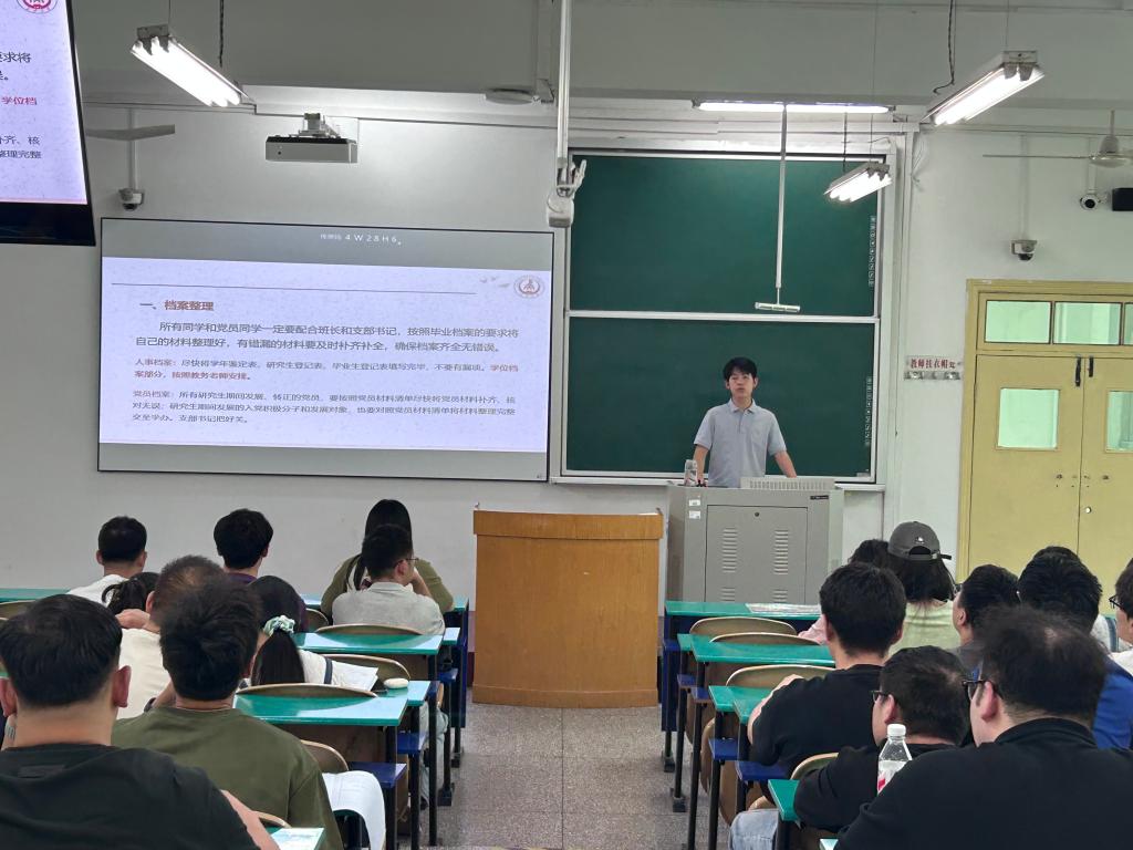 为扎实有效做好2025届毕业生离校教育工作,6月6日中午,艾弗森贝博ballbet官网在南校区北院b281教室召开2025届研究生毕业生离校教育大会,毕业班辅导员王佩佩主讲,2025届全体毕业研究生参加。