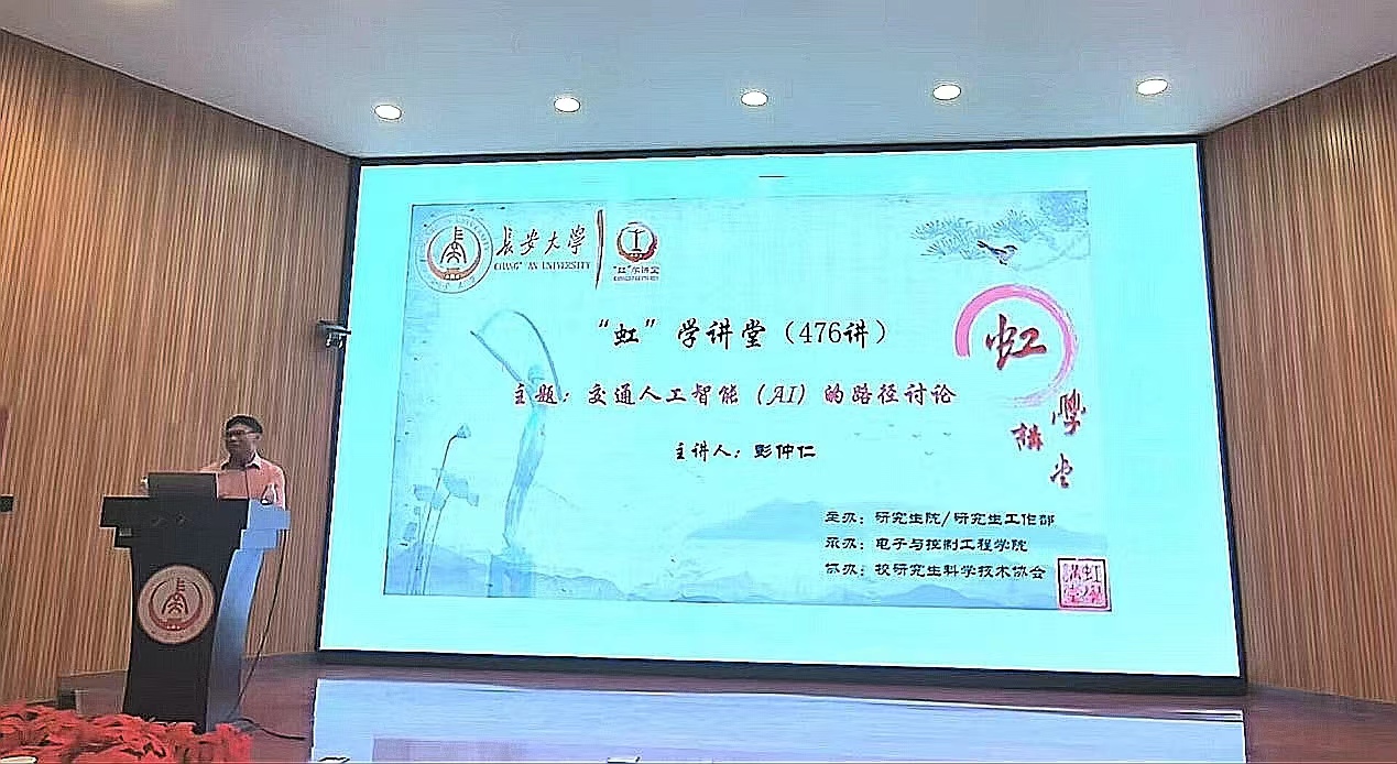 7月6日下午,由研究生院/研究生工作部主办、艾弗森贝博ballbet官网承办、校研究生科学技术协会协办的“虹”学讲堂第476讲线下讲座在雁塔校区伯声报告厅顺利举办。美国佛罗里达大学彭仲仁教授作了题为“交通人工智能(AI)的路径讨论”的报告,艾弗森贝博ballbet官网近200名师生参加讲座。