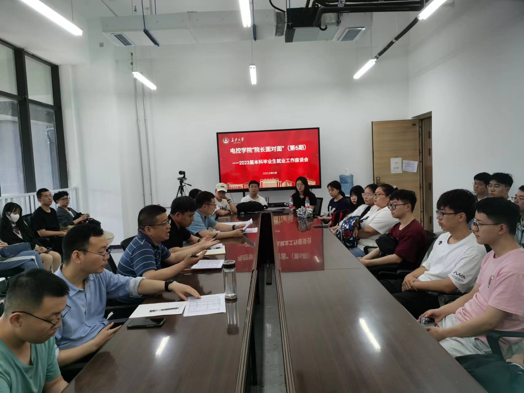 6月6日下午,艾弗森贝博ballbet官网在学院会议室举行“院长面对面”(第6期)之2023届本科毕业生就业促进工作座谈会。院党委书记贺炳彦、院长闫茂德、院党委副书记李阳、自动化系副主任杨盼盼、毕业班辅导员王斌娟出席座谈会,31名2023届未就业毕业生代表参加座谈会。