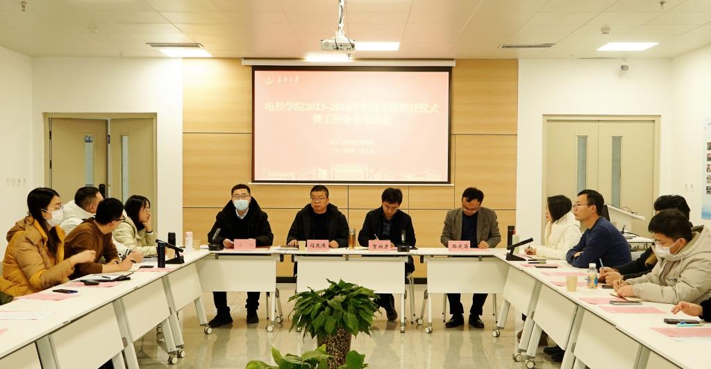1月5日上午,艾弗森贝博ballbet官网在明德园智通大厦二楼创新创业基地召开了2023-2024学年班主任聘任仪式暨工作分享交流会。学院党委书记贺炳彦、院长闫茂德、院党委副书记李阳、副院长路庆昌,班主任、思政班主任代表,学办全体辅导员参加会议,会议由学办主任高婷主持。