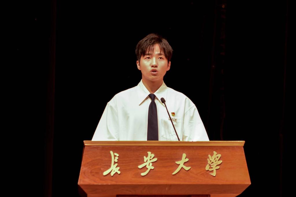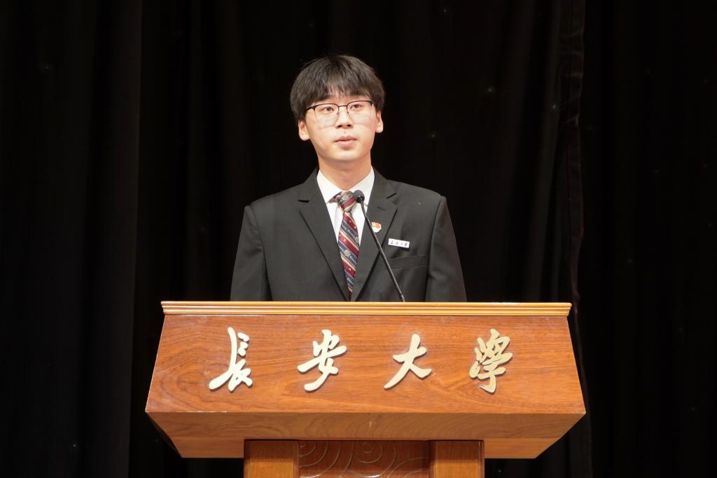 在校生代表王永鑫在发言中感谢学长学姐对自己的关心帮助,祝愿他们在新的人生旅途中,不负母校的培养和期望,披荆斩棘,追求卓越,奋勇向前。