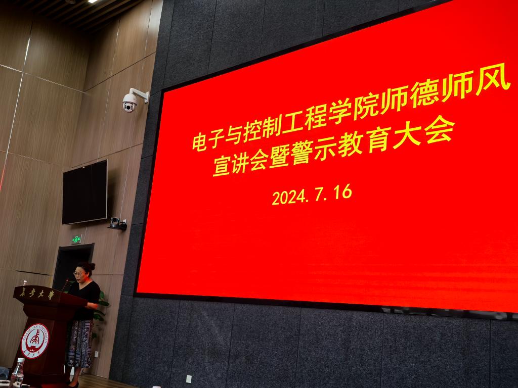 会后,学院召开师德师风宣讲会暨警示教育大会。闫茂德结合《新时代高校教师职业行为十项准则》,从坚定政治方向、自觉爱国守法、潜心教书育人、关心爱护学生、遵守学术规范、积极奉献社会等方面进行宣传教育。他表示,加强师德师风建设是贯彻党的教育方针、建设新时代教师素质的关键,是提升人才培养质量的根本保证,是评价教师队伍素质的第一标准。希望广大教职工不仅要具备深厚的学术素养和严谨的科研态度,还要在工作中坚守师德底线,做到“学为人师,行为世范”。