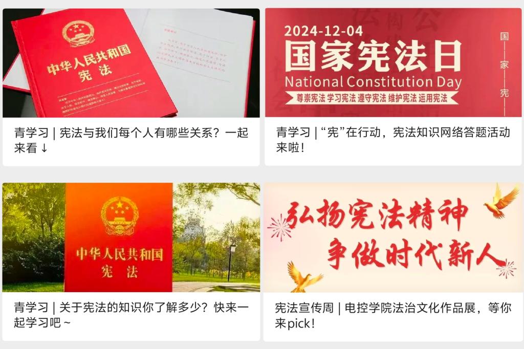 学院通过拓展网络育人功能,推动宪法宣传教育常态化长效化。积极响应上级部门关于实施“宪法卫士”行动计划的通知,制定学院“宪法卫士”行动计划实施方案,组织学生积极参加教育部全国青少年普法网“宪法卫士”学习活动,连续三年参与率达100%,形成了比学赶超的良好氛围;利用“点控未来”新媒体平台,通过网络学习、网络答题等多种形式开展宪法知识普及,在“青学习”“青思想”网络育人栏目发布法治宣传教育系列文章,引导师生切实做到心中有法、自觉守法、行为依法,相关文章阅读次数累计达1万余次。